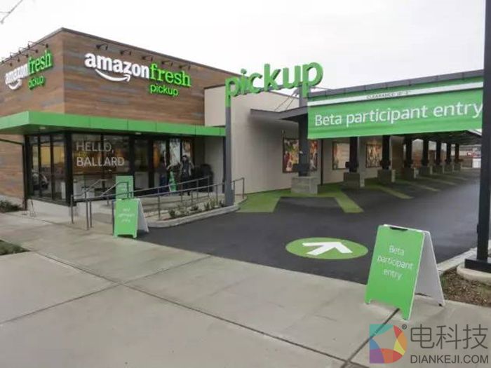 今年 3 月,亚马逊在 AmazonFresh 基础上推出了新服务 AmazonFresh Pickup,和在美国十分流行的 Drive-Thru(麦当劳得来速)模式类似,允许消费者提前在网上下单商品(生鲜、生活用品等),开车到指定的提货点,亚马逊员工会将商品直接送进后备箱,全程不需要消费者下车。目前这项服务仍在测试阶段,仅在西雅图有两个提货点。