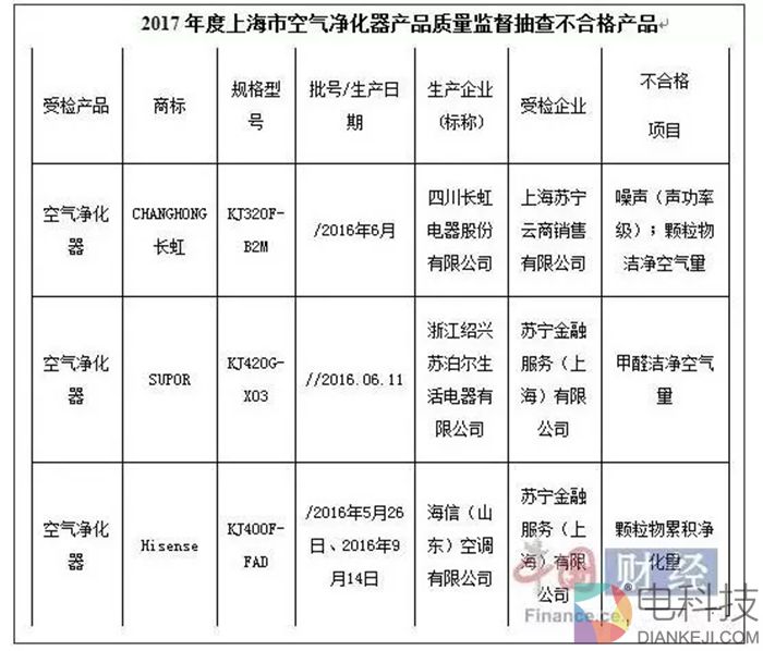 近期,上海市质量技术监督局对上海市生产的空气净化器产品质量进行了专项抽查。本次抽查了27批次产品,经检验,不合格3批次,长虹、苏泊尔、海信上黑榜。