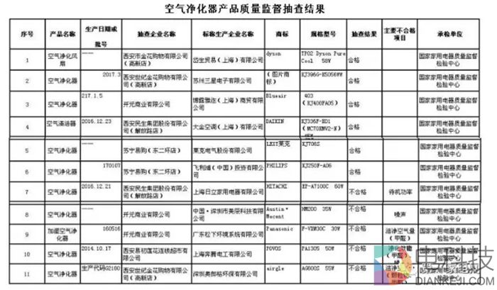 抽查发现有5批次产品不符合标准要求,涉及空气净化器的待机功率、洁净空气量、净化效能、噪声项目不合格。