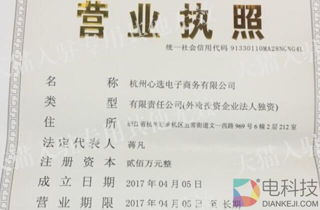 天猫店铺公示的资料显示,淘宝心选的经营主体是一家名为杭州心选电子商务公司的外商独资企业。法人名叫蒋凡,在外界看来名不见经传,注册资金为200万元,而淘宝(中国)软件有限公司则是其唯一股东。