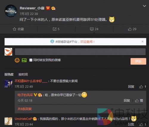 昨天网上有爆料小米或将和情怀企业诺基亚合作,今天最新的的爆料是:诺基亚手机或采用小米自主研发的澎湃S1芯片。