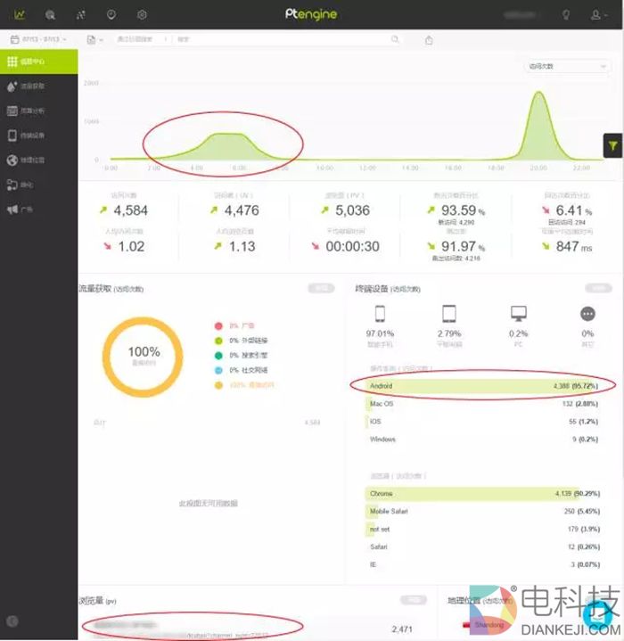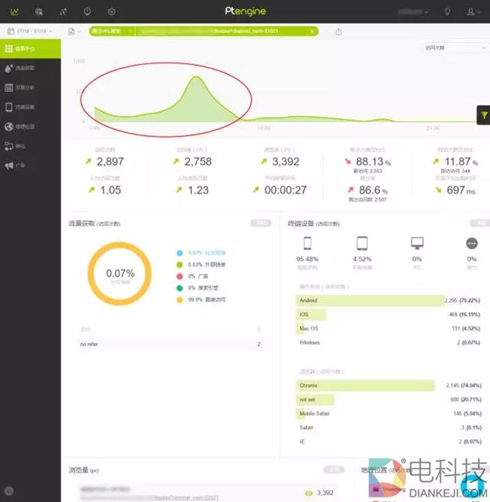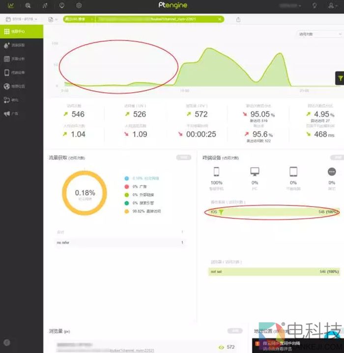 就在写文章的这会儿,又看了下今天的流量。今天早上他们上班,按照我的建议,把流量定向到了iOS,而完全舍弃了Android的量。那么看看今天怎么样吧。