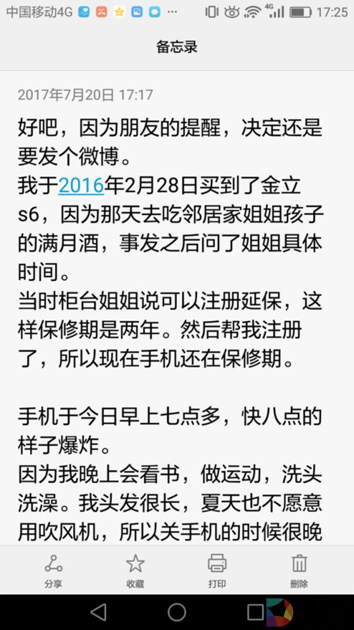 据微博博主司考过gogogo爆料:我们是济南山师的学生,我同学的金立s6手机充电爆炸了!差点伤到同学!