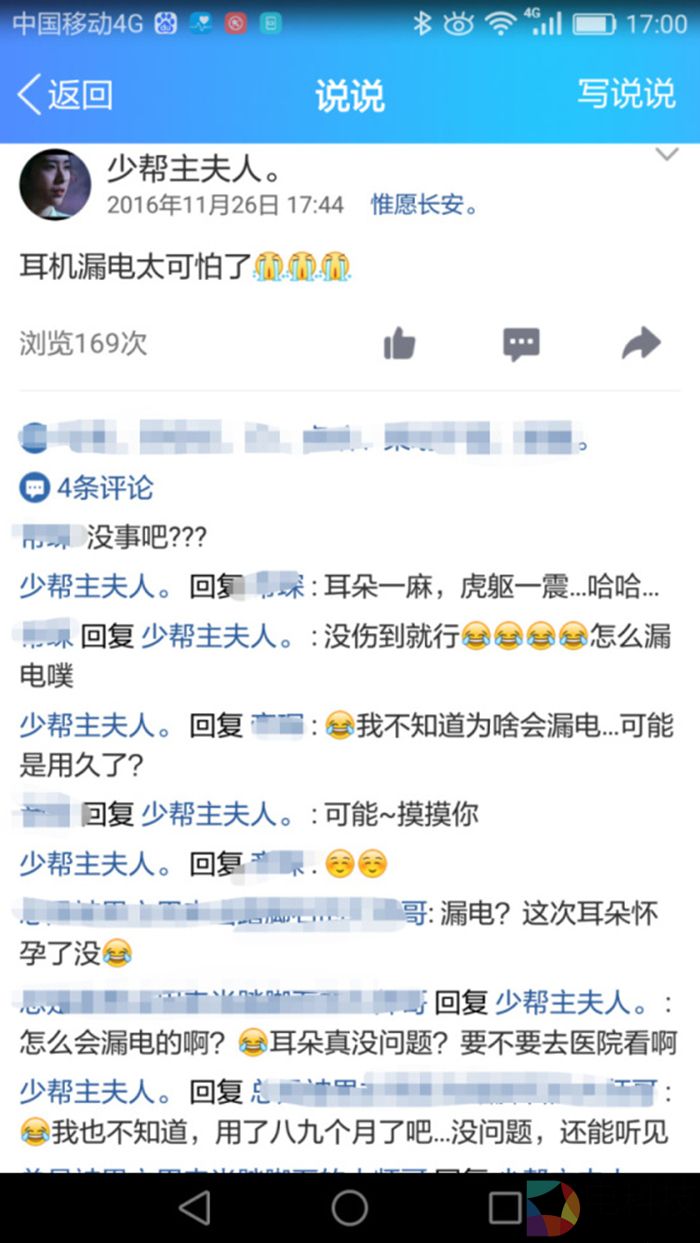 该博主称,手机是在充电过程中“爆炸”的,而且之前耳机漏电。