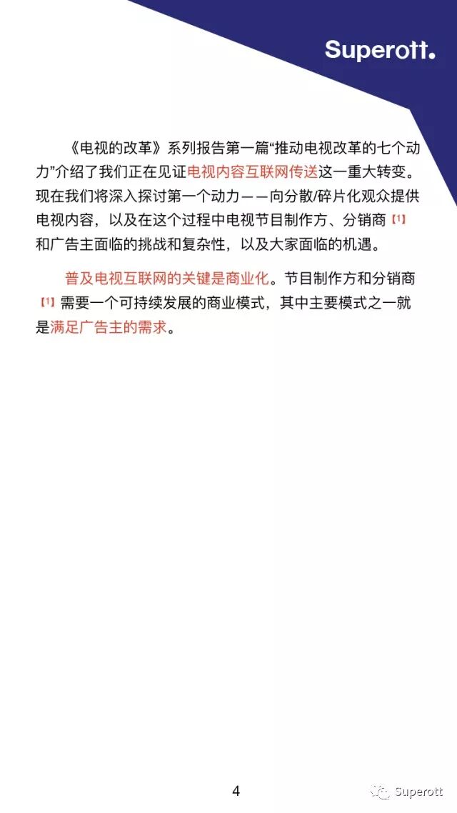《电视的发展》第一部分——“推动电视发展的7个动力”介绍了电视的传送方式向互联网加速转变。