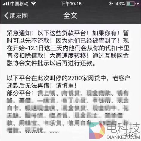 不久前,有人在朋友圈称,“以下这些贷款平台,如果你有,暂时可以先不还款!因为他们已经被查封了……”而这张截图,也被许多借款人广泛传播。