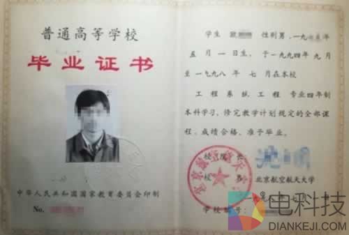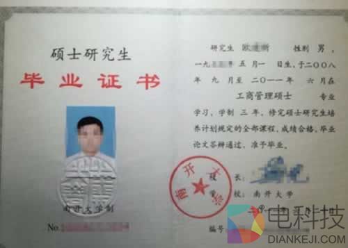 ▲欧某新的毕业证书