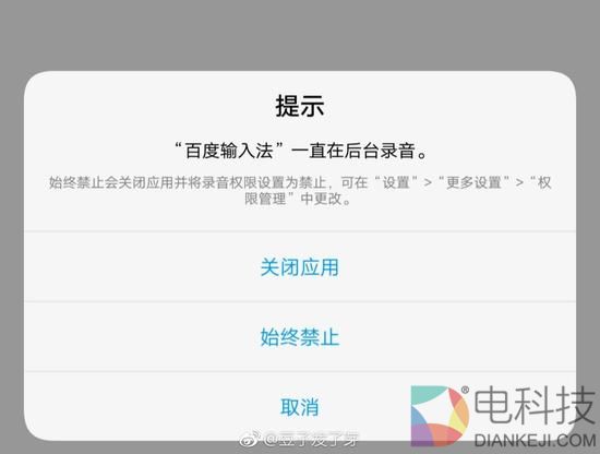 在该系统升级后,有用户使用百度输入法时,发现在通知栏弹出“百度输入法一直在后台录音”的提醒,并告知用户可以在设置中,进行权限管理更改。