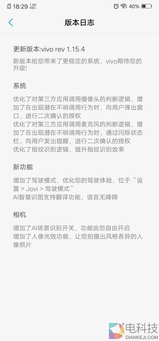 随后,vivo NEX进行了系统升级,升级为1.15.4版本后,提醒优化了第三方应用调用摄像头的判断逻辑,增强了在出现潜在不明调用行为时,向用户弹出窗口,进行二次确认的授权。
