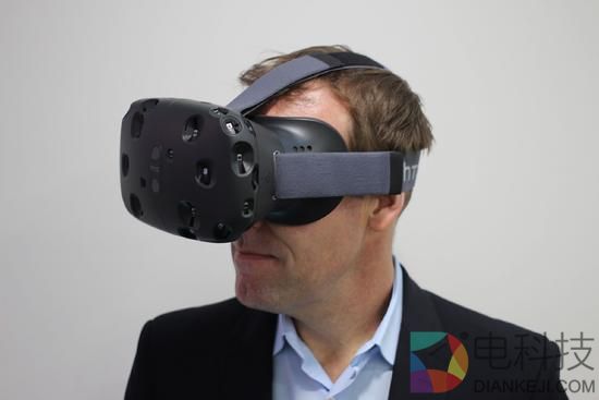 (HTC营销执行董事Jeff Gattis戴着Vive头套)