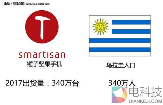 锤子2017年的销量达到了340万,去年坚果PRO以及坚果PRO 2两款千元级别的产品带动了锤子的销量,但中高端的产品缺席,一定程度影响了锤子的出货量。锤子全年的出货量340万台,也刚刚能满足乌拉圭340万人人手一台坚果手机。