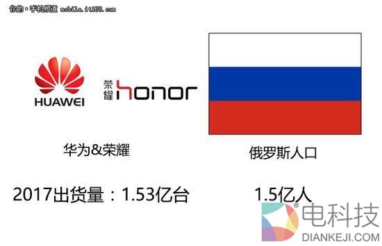 纵观国内几大品牌2017年的销量,我们可以发现,已经有2个品牌破亿,而全球人口破亿的国家也只有13个,而华为和荣耀2017年的出货量是1.53亿台,华为也早前宣布2018年上半年的出货量也达到1亿。而俄罗斯的人口也是1.5亿,如果全个俄罗斯的人都用华为手机,那么就是人手一台了。