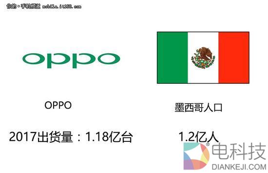 OPPO在2017年的出货量是1.18亿,去年OPPO凭借R9和R9S系列获得了非常大的销量增长,而墨西哥人口也达到了1.2亿得规模,基本上能满足墨西哥全国人民一人一台OPPO手机,当然还差200万,应该2018年的出货能达成这个目标。