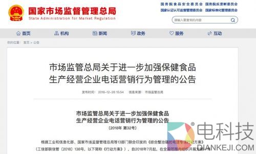 12月27日消息,据国家市场监督管理总局消息,保健食品生产经营企业要按照《综合整治骚扰电话专项行动方案》要求,认真开展电话营销行为自查自纠。根据工业和信息化部、国家市场