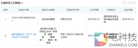 企查查结果显示,第1车贷先后两次遭遇行政处罚。
