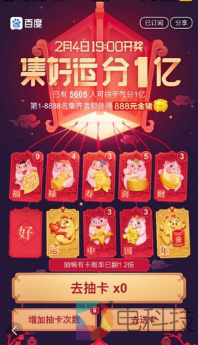 据最新消息,百度集好运卡奖品升级翻倍,目前还有1000多个名额,后来加入的小伙伴们可以放心抢!先到先得!