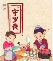 除夕夜守岁也是一项流传久远的习俗,传说守岁是为了防止一种独角兽的侵害,而这种独角兽最怕火光、红色和声响,所以人们就在除夕夜穿红衣、点红灯、贴红纸、放烟花炮竹,焚香祈祷,彻夜不眠,也就有了“守岁”习俗。