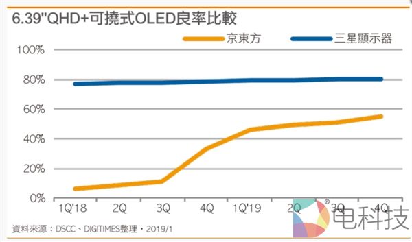 京东方主要以B7产线生产柔性OLED面板,B7产线在2018年初启用,但有传言称,该产线至今良品率未能超过50%,但近期有消息称B7产线良品率已大幅改善。