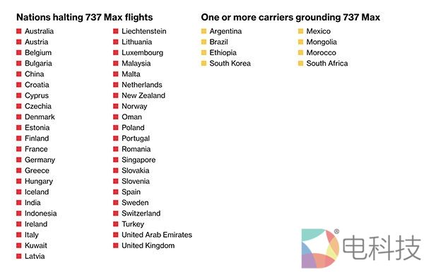 据外媒不完全统计,目前至少已经有43个国家(地区)全面停飞737 MAX 8,另外还有8个国家(地区)的1家或1家以上的航空公司暂停737 MAX 8运营。