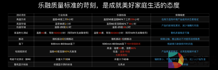 张荣东认为,一台好的电视产品,不只是炫技和极致科技的堆砌。乐融Letv对于最终产品的测试,始终坚持着比行业更为严苛的标准。例如,在温度50度湿度80%的情况下能工作236小时;在电磁干扰测试(EMI)中余量大于6DB (行业标准是3 DB)。乐融质量标准的苛刻,是成就美好家庭生活的态度。
