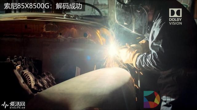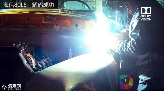 虽然解码成功,但是从电焊的高光部分来看,80L5没能还原出杜比视界所应有的高动态范围。相比X8500G所显现出来的电焊火焰的细节,80L5可以用惨白一片来形容。