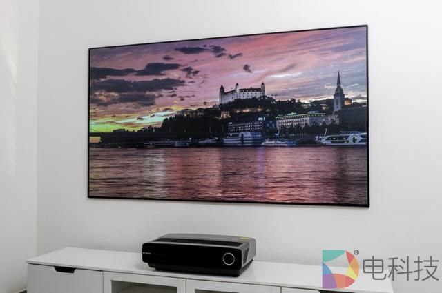 必须要指出的是,激光电视本质上不是传统意义的平板电视,其核心是一台DLP超短焦投影机。为了克服传统投影机的种种不足,海信激光电视使用了亮度更高、寿命更长的激光光源,标配了一块抗反光的菲涅尔屏幕,主机内置了双声道扬声器,可以选配无线低音炮。