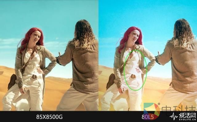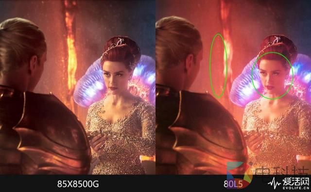 85X8500G与80L5同一帧对比,下图是中心画面特写