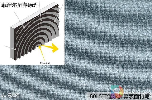 为了更好汇聚投射出来光线,80L5使用了菲涅尔屏幕,而不是传统幕布,但"成也菲涅尔,败也菲涅尔"。