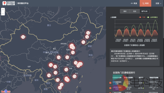 近日,百度地图推出“实时路况平台”,一方面支持实时查看全国高速拥堵趋势变化和拥堵路段排行,另一方面,还提供热门交通枢纽的人流指数分析和周边拥堵情况,共同为返程期间公众平安出行、政府及交通运输单位提供大数据决策支持。百度地图大数据显示,往年春节的返程拥堵高峰往往出现在初六,但今年由于疫情防控政府统一延长了春节假期,部分省市规定了更晚的复工时间,还有部分地区实行交通管控,大量公众返程复工时间延后,因此今年正月初一之后高速拥堵呈现了较为平缓的趋势。