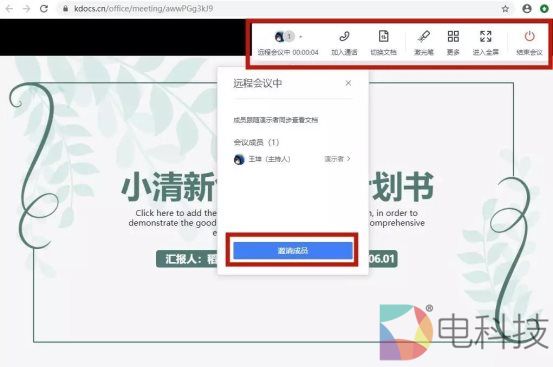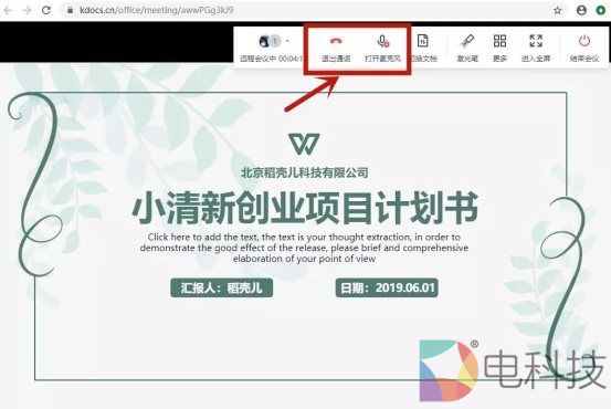并且,点击旁边的【加入通话】,直接一键语音加入会议,配合激光笔在PPT上标记重点,声画合一,虽然远在天边依然可以掌控全场。需要注意的是,会议功能请在金山文档内使用(PPT,PDF,文字,表格等文档都可以异地同步演示)。