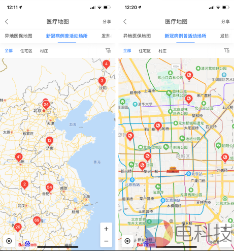 2月6日下午,北京市首次发布新冠肺炎新发病例活动过的小区和场所,引起了公众广泛关注。当晚,百度地图紧急上线"新冠病例曾活动场所"专题地图,依据官方发布信息,北京市
