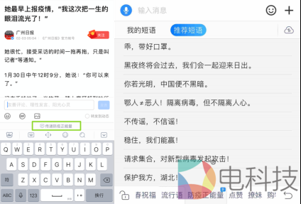 与此同时,百度输入法还特别上线了“防疫正能量”语录推荐,可供用户参考使用。例如:“乖,带好口罩”,“稳住,我们能赢!”,“城市可以隔离,但爱不会”等等,通过温暖有力的话语,向奋战在防疫一线的医务工作者致敬,给其他人传递祝福和能量。
