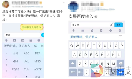 新型冠状病毒感染的肺炎疫情在非典结束的17年后,再次将“野味”的严重性带到大众眼前。自疫情发生以来,每天都有各种新闻不断提醒人们拒绝野味。近期许多用户在使用百度输入法输入“野味”、“果子狸”、“吃蝙蝠”等词时,还会在联想词的位置发现“拒绝野味,保护家人”的暖心提示语……至此,生活的每个细节都在提醒人们拒绝野味。人们打字输入、在线沟通时,百度输入法就用联想词第一时间提醒大家拒绝野味,具有非常强效的警醒作用,也因此获得了大批网友的认可。