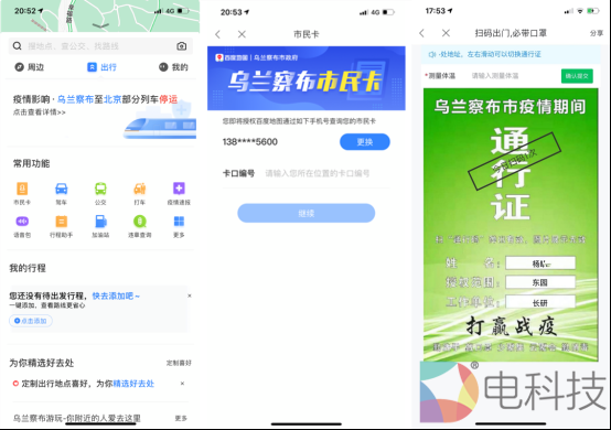 作为市民外出时的高频工具,百度地图支持在导航界面直接打开通行证。身处乌兰察布的市民在百度地图首页出行助手中找到“市民卡”,输入手机号和当前卡口编号,即可由百度地图发起申请,在无需获取市民个人信息的前提下,由区块链跨链计算生成通行证。有效解决了防疫期间,人工核实身份耗时长、纸质登记容易造成交叉感染的问题。