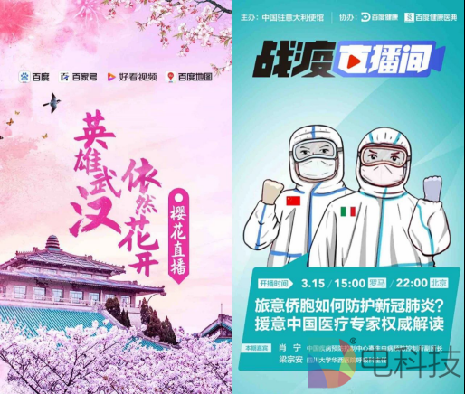 百度的这种直播布局思路并不仅仅体现在疫情相关内容直播中。此前,百度App曾专门推出“想见你现场”安排网络明星展示很少能够在线下演出中出现的直播内容,例如徐冬冬无滤镜出镜等,此外,还有嘻哈包袱铺等参与的“云相声”直播。3月中旬,百度旗下数个APP还搞了一场持续数天的“云游·春光中的武汉”直播活动,18日的“英雄武汉,依然花开”赏樱直播活动吸引大量用户“云赏樱”。