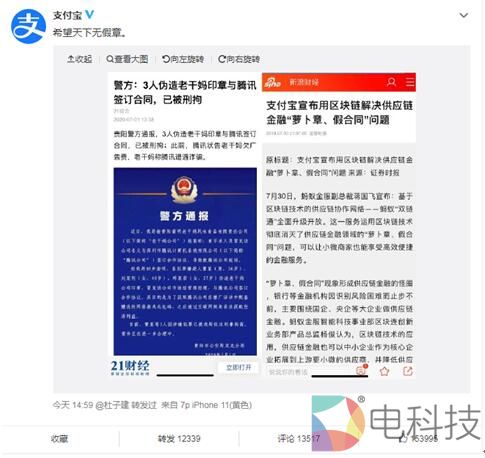 例如,这起案件中,如果腾讯方面能更有效地确认人员、公章和凭证确实属于老干妈一方,自然不会坠入如此直接的陷阱。警方通告出来之后,支付宝、百度AI官博纷纷呼吁,大意是要运用区块链技术来解决供应链金融“萝卜章、假合同”问题。