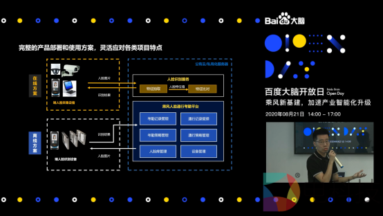 目前人脸技术已在企业办公、智慧社区、金融保险等多领域多场景中落地应用,发展潜力巨大。8月21日,百度大脑开放日“乘风新基建,加速产业智能化升级”专场活动在乌镇召开。会上,基于百度大脑领先的人脸识别技术,百度智能云全新发布乘风人脸通行考勤平台,为广大企业提供一站式通行考勤解决方案,10分钟完成上线,满足企业对门禁闸机通行、员工考勤等场景的快速落地需求。