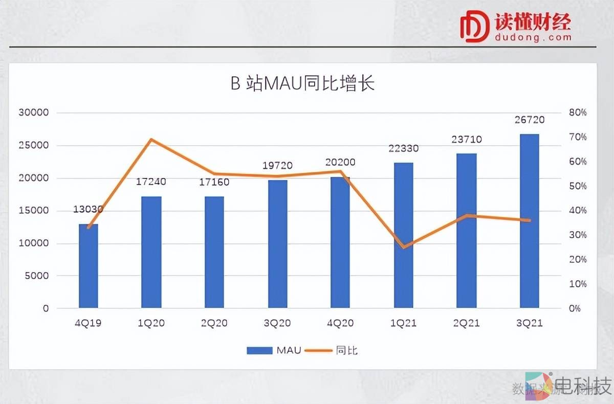 B站作为年轻人热衷的中长视频平台,在2021年三季度财报中显示,MAU环比净增3010万人至2.67亿人,同比增长36%,超出市场预期的30%增速。陈睿将之归结为TV端的优秀表现,当下TV端的MAU已经超越了PC端,成为MAU排名第二的设备。