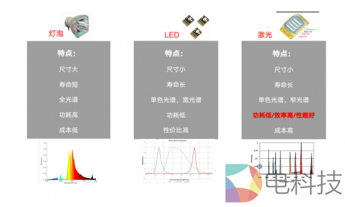 首先,投影仪普遍采用的光源是以下三种;灯泡、LED、激光。