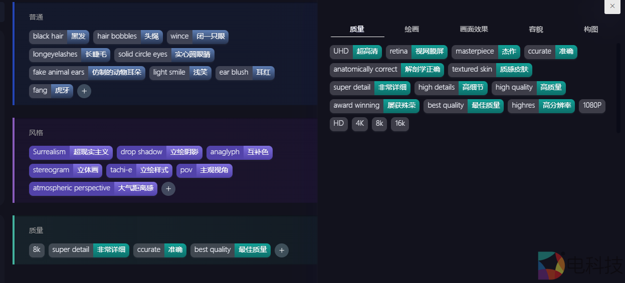如今,为了提高绘图效率,海艺AI提供大量专业提示词,通过点击可以选择提示词,就可以轻松地创作出图,不必再为思考合适的提示词而苦恼;