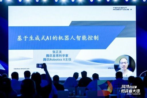 在《基于生成式AI的机器人智能控制》主旨报告中,腾讯首席科学家张正友指出,“现在的具身智能是‘大模型+机器人’,是人为强行把智能塞进机器人体内。未来,期待智能和本体能够有机结合,让机器人在与环境的交互中涌现智能。”