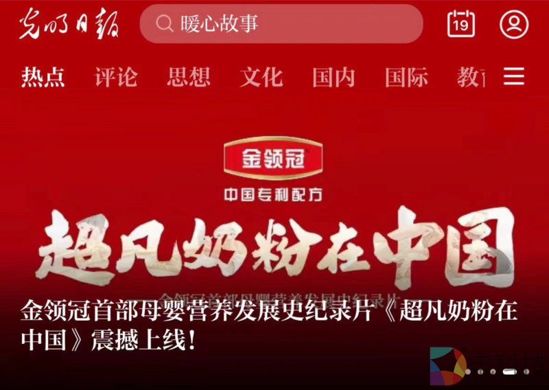 光明日报客户端报道金领冠纪录片《超凡奶粉在中国》