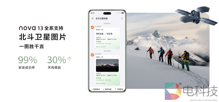 屏幕素质层面,华为nova 13 Pro搭载全新动态臻彩屏,在用户普遍关注的续航上,搭载5000mAh大电池,支持100W智能快充Turbo,华为nova 13 Pro 9分钟即可充电至50%(数据来源: 华为实验室)。与此同时,华为nova 13系列全系支持北斗卫星图片消息功能,为年轻人户外出游提供多一份安心。