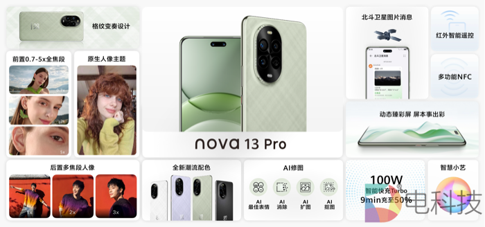 影像方面带来优化升级的华为达芬奇人像引擎、三种人像美颜主题的同时,nova 13 Pro支持前后多焦段人像,让华为nova系列的人像体验再登峰;此外,nova 13系列还首发AI最佳表情功能、并支持AI扩图、AI智慧抠图等功能,带来AI趣玩体验,全系支持北斗卫星图片消息,支持100W智能快充Turbo,综合能力升级,带来全新智慧体验。华为nova 13系列不断探索科技美学无限可能,给年轻人带来了更自在、惬意的时尚潮品新体验。