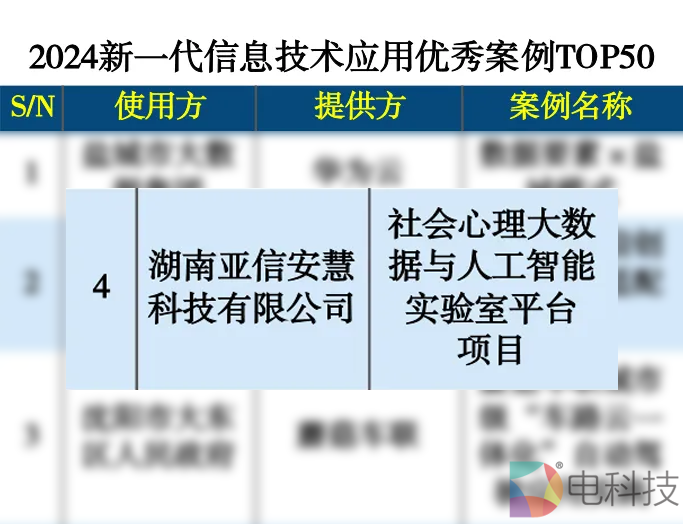 日前,DBC德本咨询发布"2024新一代信息技术应用优秀案例TOP50"榜单,湖南亚信安慧科技有限公司(简称:亚信安慧)承建的某社科项目,位列榜单第4。这表明亚信安慧在人文社科研究领域的创新实践与探索受到了业内的广泛认可。