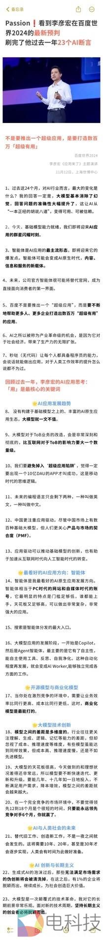 “智能体是AI应用的最主流形态,即将迎来它的爆发点。今天,全球所有顶尖科技公司都很关注智能体,但像百度这样把智能体作为最重要战略方向的并不多。我认为,做智能体很像PC时代做网站,或者是移动时代做自媒体账号。不同之处是智能体更像人,更智能,更像你的销售,你的客服,你的助理。智能体可能会变成AI原生时代,内容、信息和服务的新载体。”