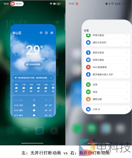 至此,ColorOS 15几乎实现了行业覆盖最全打断动画,始终丝滑如一。