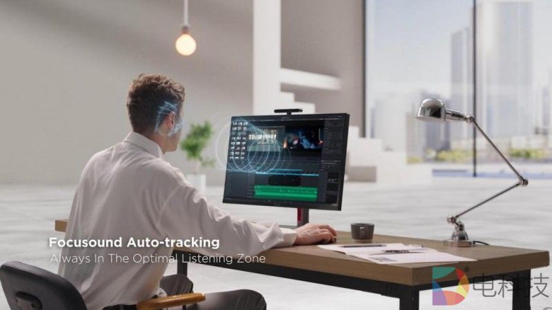 值得关注的是,全新款M90配备的智能追踪技术能让声音“跟着人走”。当你在座位旁边拿文件,或侧头和同事讨论时,藏在屏幕顶部的摄像头会实时捕捉头部位置,声音方向也会随之自动调整。这意味着视频会议时,用户无需时刻端坐,即使活动身体,对方的声音始终正对双耳,再也不会出现“声音断片”的尴尬,以确保语音交互的连贯性。