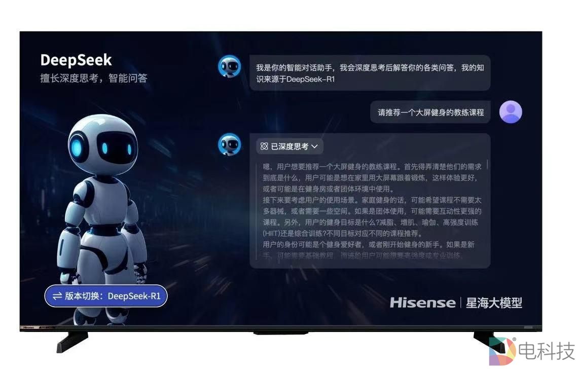 2025开年,最火的除了票房超百亿的《哪吒2》,就是引发整个科技圈大地震的DeepSeek。放眼电视行业,2月11日,海信电视宣布其全系智能电视正式接入DeepSeek深度思考模型,并支持“满血R1”与“V3”双版本自由切换,这意味着其成为了行业首个搭载深度思考智能体的电视品牌。