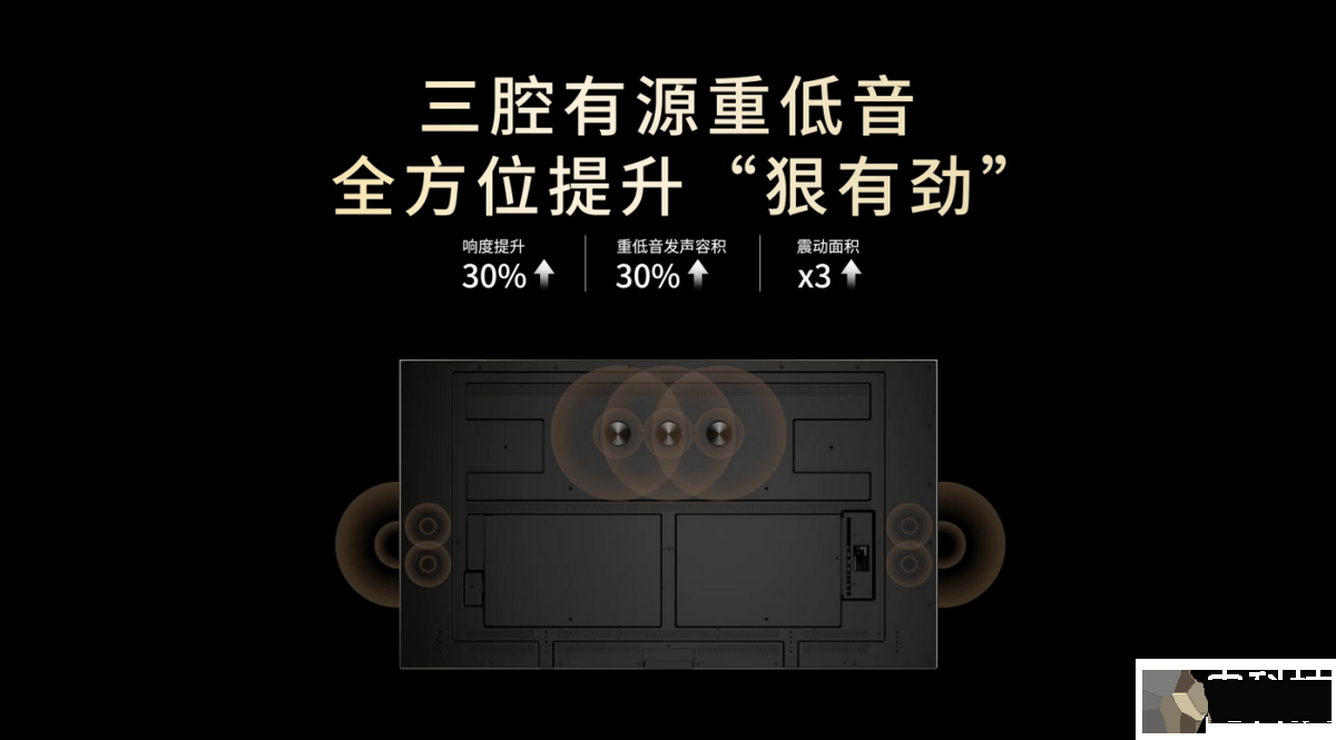 最后,好的音质加持是电视重要加分点。Q10Air是30mm内唯一内置三腔独立重低音的电视。配备的是三腔有源重低音,相比普通音响,它的震动面积增加了3倍、响度提升30%、重低音发声容积也提升30%,再配合专为追光系列定制的R6曲率声学设计,让它发出的不仅仅只是“声音”,更是从四面奔涌而来的“音瀑”。